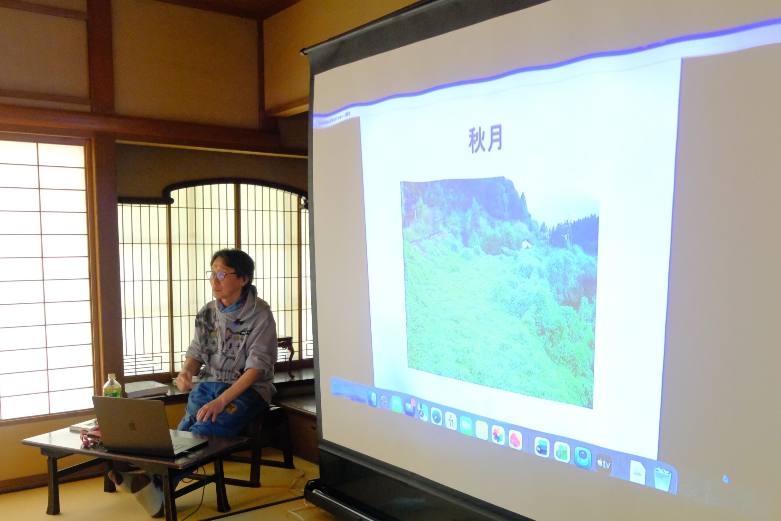 4月11日(土)開催の第1回目は、「水菓子と葛菓子~京阪石山駅~」をテーマに、古くから薬用・滋養食として知られる「葛(くず)」の有名な産地や葛が原料の菓子の紹介やその謂れ、また、京阪石山駅近辺の史跡・名称や石山寺門前の「食」などについて、講師である太田達が探訪し考察した内容を中心に話を進めました。